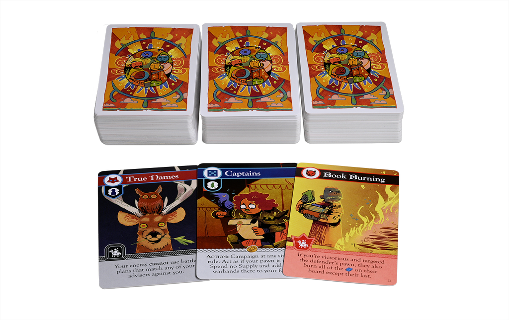 In Oath, there are no fancy production tricks, app-assisted mechanisms or production gimmicks. The game can be reset at any time and doesn’t require the same play group from one game to the next. A player might use the fully-featured solo mode to play several generations during the week and then use that same copy of the game for Saturday game-night with friends. There are no scripted narratives or predetermined end points. The history embedded in each copy of Oath will grow to be as unique as the players who helped build it.